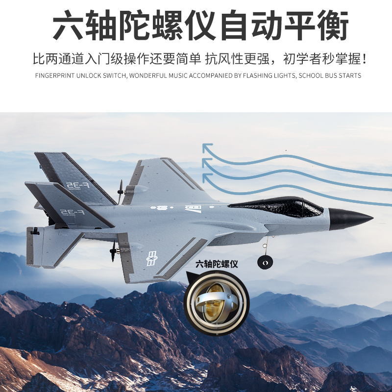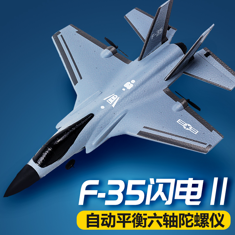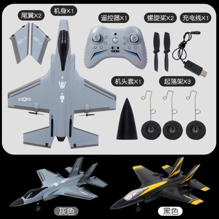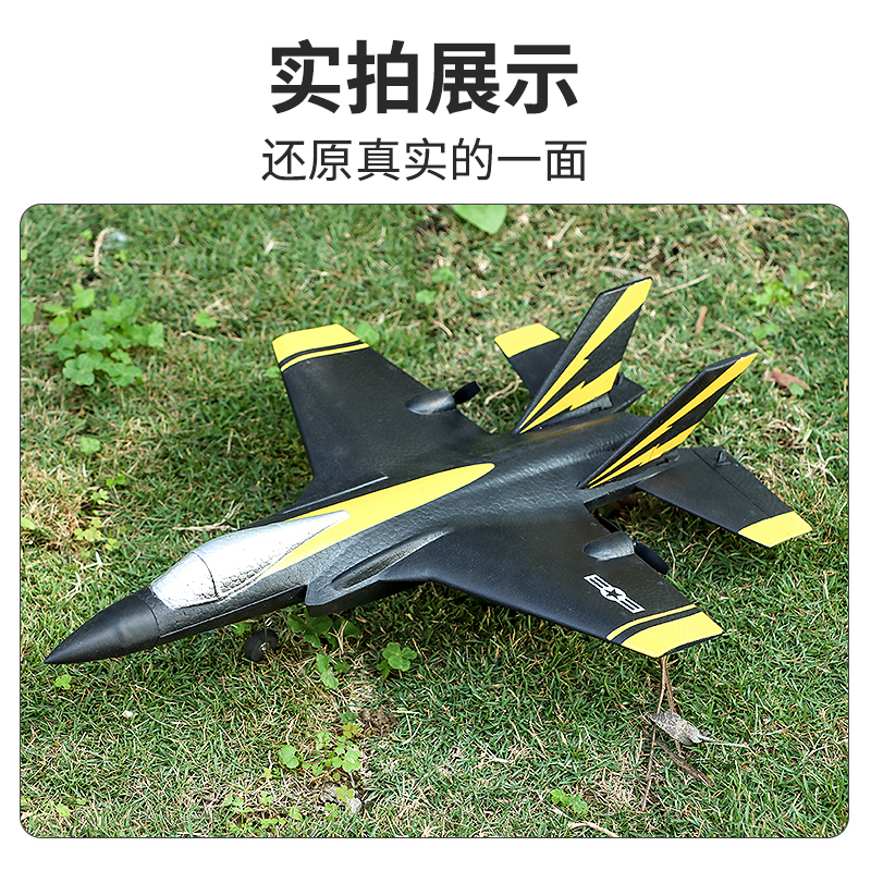 1. 根据F35战斗机同比例缩小,像真度高,四通道设计,电机差速和两个舵机控制飞机左转右转,爬升与下降,左手控制飞机油门;